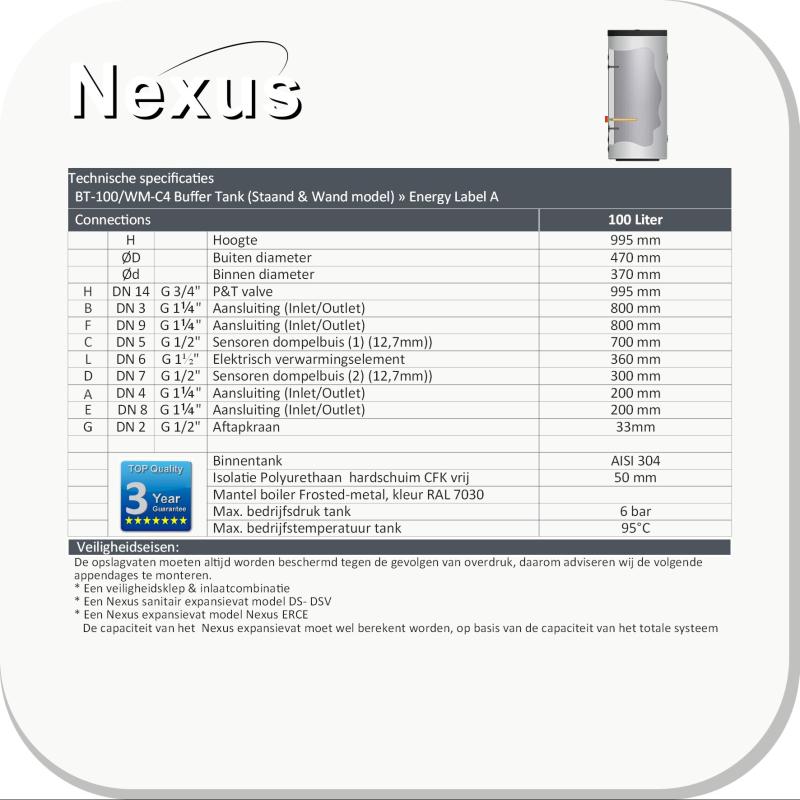 De NEXUS buffertanks van roestvrij staal voldoen aan de productiecontrole volgens de Europese richtlijn 2014/68/EU (module A). Met de de geavanceerde lastechniek beschikken de buffers over een internationaal hoog, duurzaam kwaliteitsniveau en een zeer elegante uitstraling en uitmuntende weerstand tegen corrosie.