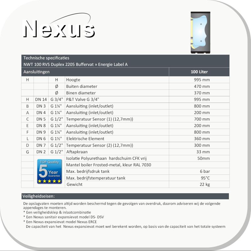 De NEXUS buffertanks van roestvrij staal voldoen aan de productiecontrole volgens de Europese richtlijn 2014/68/EU (module A). Met de de geavanceerde lastechniek beschikken de buffers over een internationaal hoog, duurzaam kwaliteitsniveau en een zeer elegante uitstraling en uitmuntende weerstand tegen corrosie.