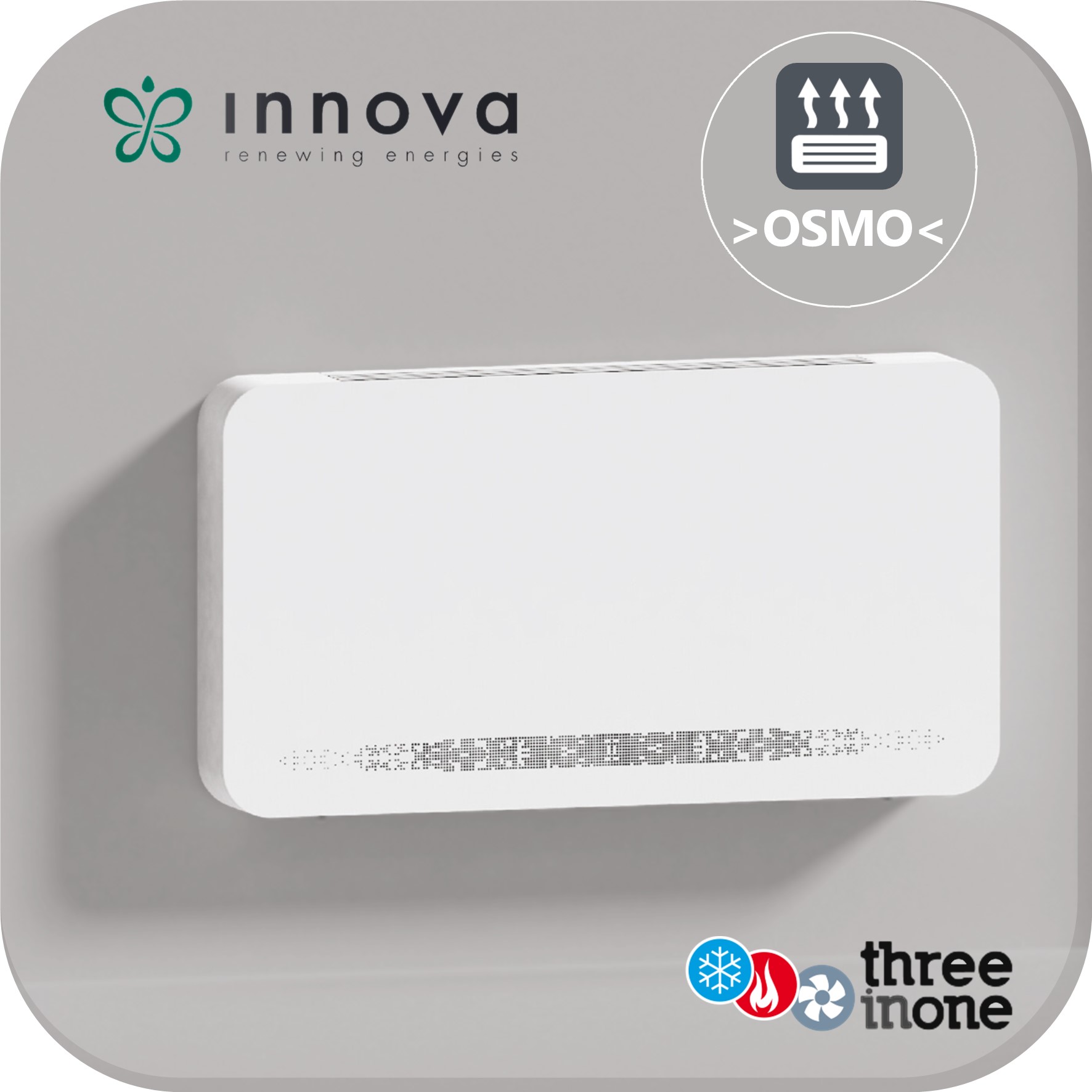De nieuwe INNOVA fancoil die het thuiscomfort van de toekomst opnieuw definieert. De OSMO fancoil werkt niet alleen aan de intensiteit, maar ook aan het geluid, zo worden de pieken van de tonen afgeflakt, waardoor ze nog stiller worden. Met het ronde, smallere en dunnere ontwerp bieden wij twee productversies: de SL en RS modellen. De ventilatorsnelheid wordt continu aangepast door de slimme thermostaat controller met onbetwistbare voordelen voor het regelen van een gezond klimaat in alle modus.