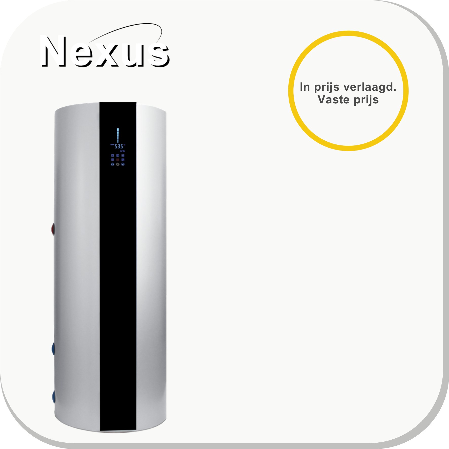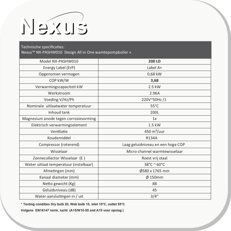 Nexus™ producten zijn van top kwaliteit. Fraai uiterlijk, innovatief en zeer efficiënt. Dankzij de aantrekkelijke vormgeving kan de unit zo in de bijkeuken of kelder worden geplaatst. Dit bespaart kosten voor het wegwerken. Afhankelijk van de buitenomstandigheden kunnen de exploitatiekosten 25% van die van een elektrische warmwaterketel zijn.