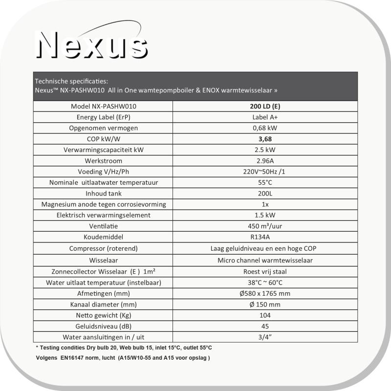Nexus™ producten zijn van top kwaliteit. Fraai uiterlijk, innovatief en zeer efficiënt. Dankzij de aantrekkelijke vormgeving kan de unit zo in de bijkeuken of kelder worden geplaatst. Dit bespaart kosten voor het wegwerken. Afhankelijk van de weersomstandigheden kunt u 75% enegiekosten besparen Daarnaast kan deze unit in combinatie gebruikt worden met onze zonnecollectoren voor een optimaal rendement en een maximale besparing.