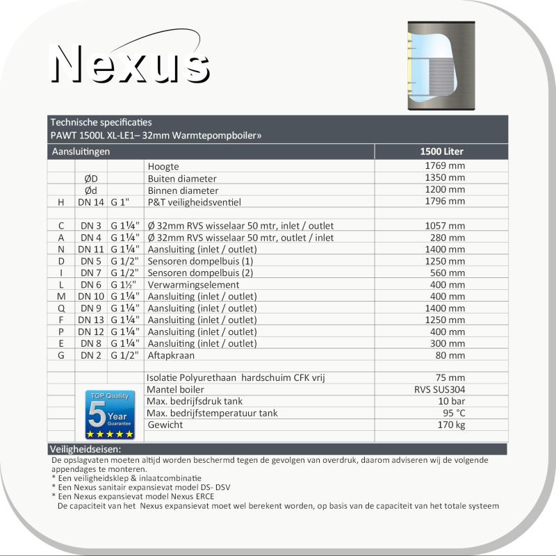 PAWT-1500 XL-LE1 Solar-boiler met hoog rendement XL RVS warmtewisselaar.