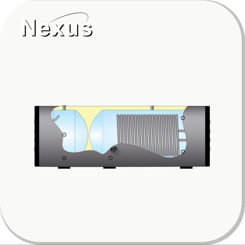 2 Functies: In het bovenste deel van de opslagtank wordt vers water verwarmd, terwijl het onderste deel de verwarmingsretour buffert en ontdooi-energie levert voor de warmtepomp.
