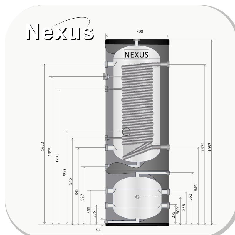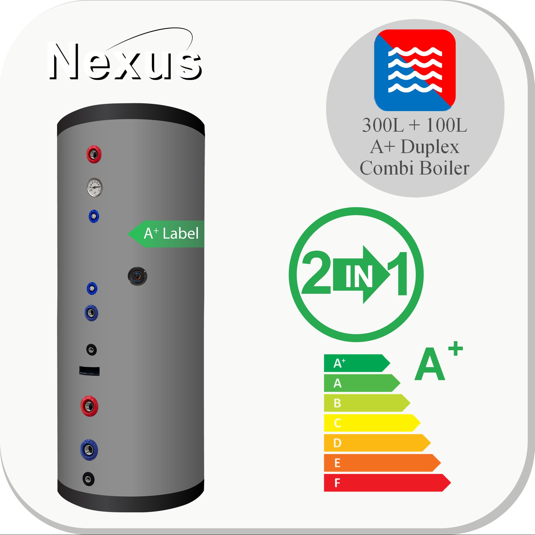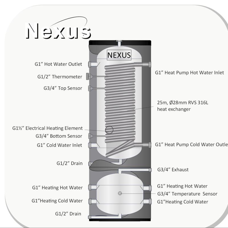 De RVS NEXT NXWT 300L+100L is een A+ LABEL gecombineerde 2-in-1 hygiëne boiler & buffer voor warmtepompsystemen volgens het doorstroomprincipe.